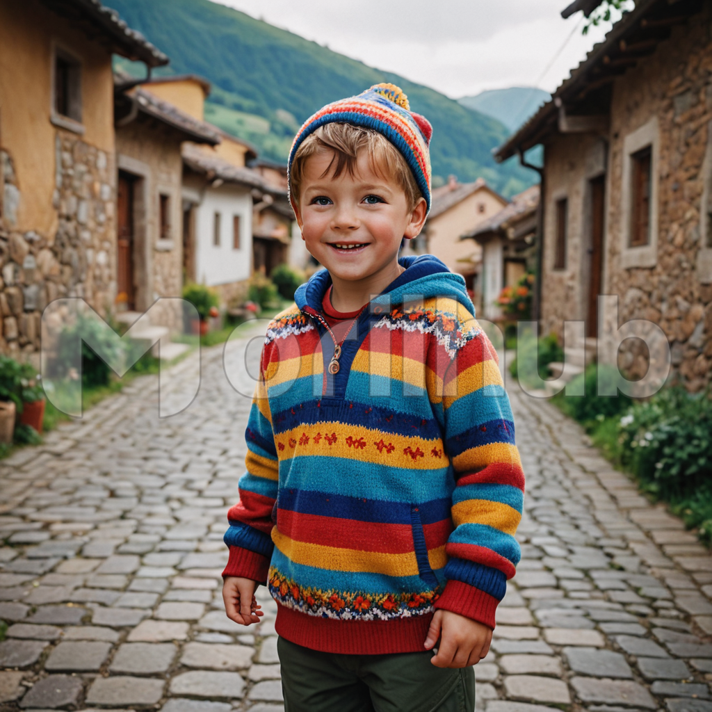 In the stillness of the empty streets, a cute young boy beams with joy, his colorful sweater and beanie adding a vibrant contrast to the serene surroundings. With each step, his playful energy fills the quiet space, his smile radiating warmth and innocence. Despite the absence of bustling activity, he finds delight in the solitude, his cheerful presence bringing life and color to the tranquil streetscape, painting a charming picture of youthful exuberance amidst the solitude.