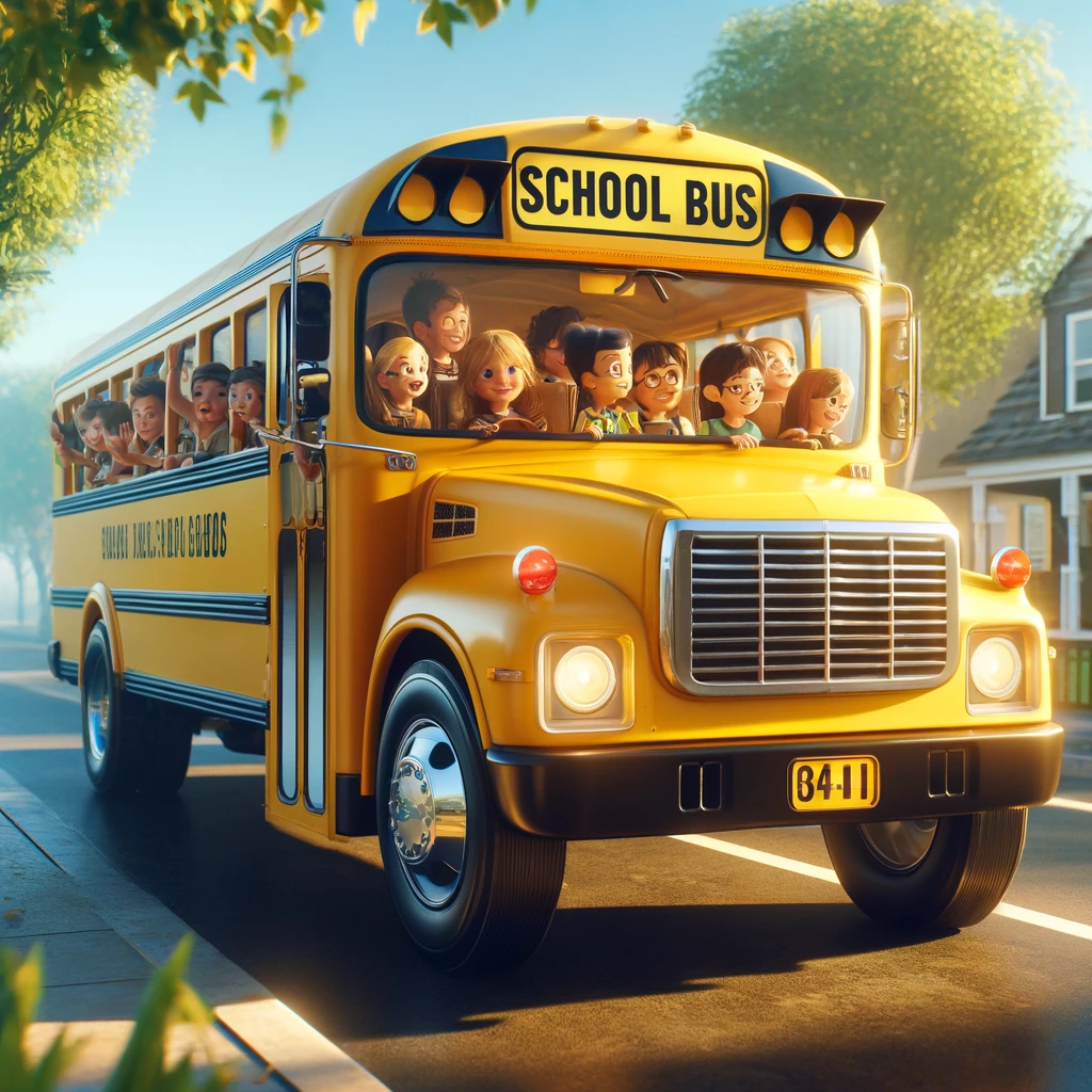 A cheerful yellow school bus rumbles along, its vibrant exterior a beacon of youthful energy. Through the windows, eager faces of children of various ages peer out, their eyes wide with anticipation and excitement. Laughter and chatter fill the air as friendships are forged amidst the journey to knowledge.
