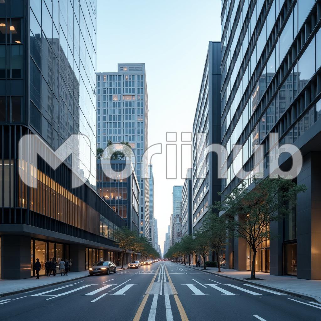 A bustling city street comes alive with energy as cars glide smoothly along the pavement, their engines humming in the vibrant atmosphere. People line the curb, engaged in conversation or hurriedly crossing the road, each immersed in their own world. On either side, towering skyscrapers loom majestically, their glass facades reflecting the light and casting playful shadows on the street below. The air is filled with the sounds of the city: laughter, distant sirens, and the rhythmic beat of footsteps. This dynamic scene captures the essence of urban life, alive and thriving.