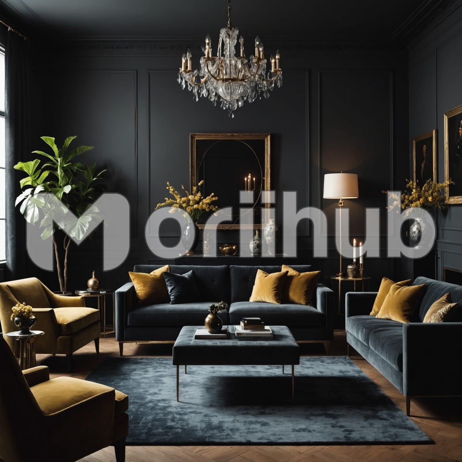 The living room is a cozy retreat, with plush couches arranged invitingly around a sleek coffee table. Soft, colorful cushions are scattered across the couches, adding comfort and a splash of personality. A potted plant sits gracefully beside one couch, its vibrant leaves bringing a touch of nature indoors. The warm, ambient lighting creates a welcoming atmosphere. A soft rug underfoot ties the space together, making it the perfect spot to relax, read, or entertain friends.