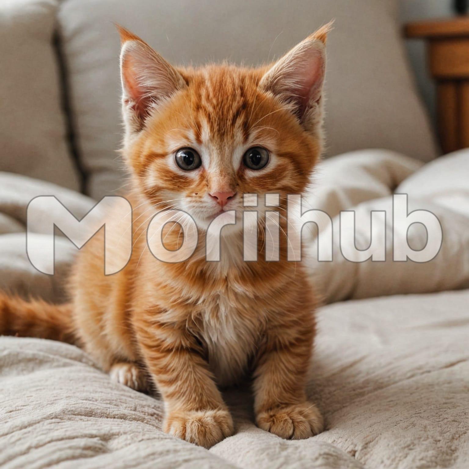 A cute cat lounges comfortably on the bed, its soft fur spreading out in a relaxed, cozy manner. The cat’s eyes are wide and curious, fixed on something just out of view. Its tail curls gently around its body. The bed beneath it is plush and inviting, creating a perfect spot for the cat to rest. The overall scene is one of tranquil contentment, with the cat’s adorable presence adding a touch of warmth and charm to the space.