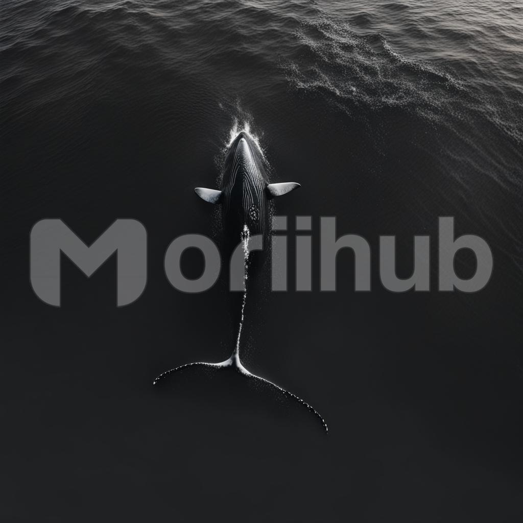 Beneath the gentle ripples of the ocean surface, a majestic silhouette emerges—the graceful form of a whale swimming, viewed from above. The dark outline of the massive creature glides through the deep blue, creating an elegant dance with the play of sunlight on the water’s surface. The expansive ocean becomes a canvas for the whale’s silhouette, a testament to the beauty and tranquility of marine life, captivating the observer with the serenity of this underwater ballet.