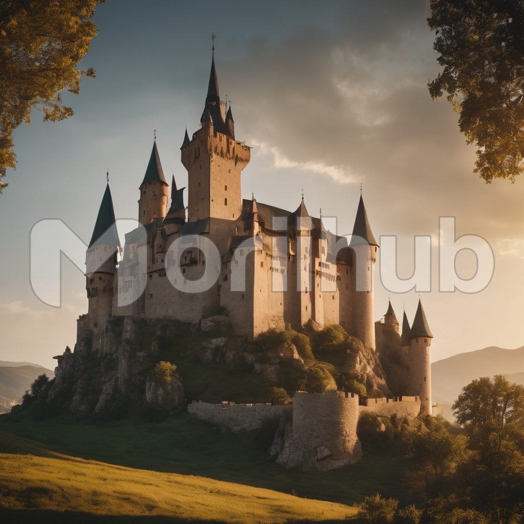 Amidst lush greenery, a medieval castle stands with timeless grandeur. Its weathered stone walls and towering turrets echo tales of history. The sky, overcast and dull, adds an air of mystery to the scene. The castle, adorned with ivy and surrounded by vibrant foliage, contrasts with the somber sky, creating a picturesque yet enigmatic ambiance. Nature embraces the fortress, weaving a narrative of bygone eras within the embrace of its ancient walls.
