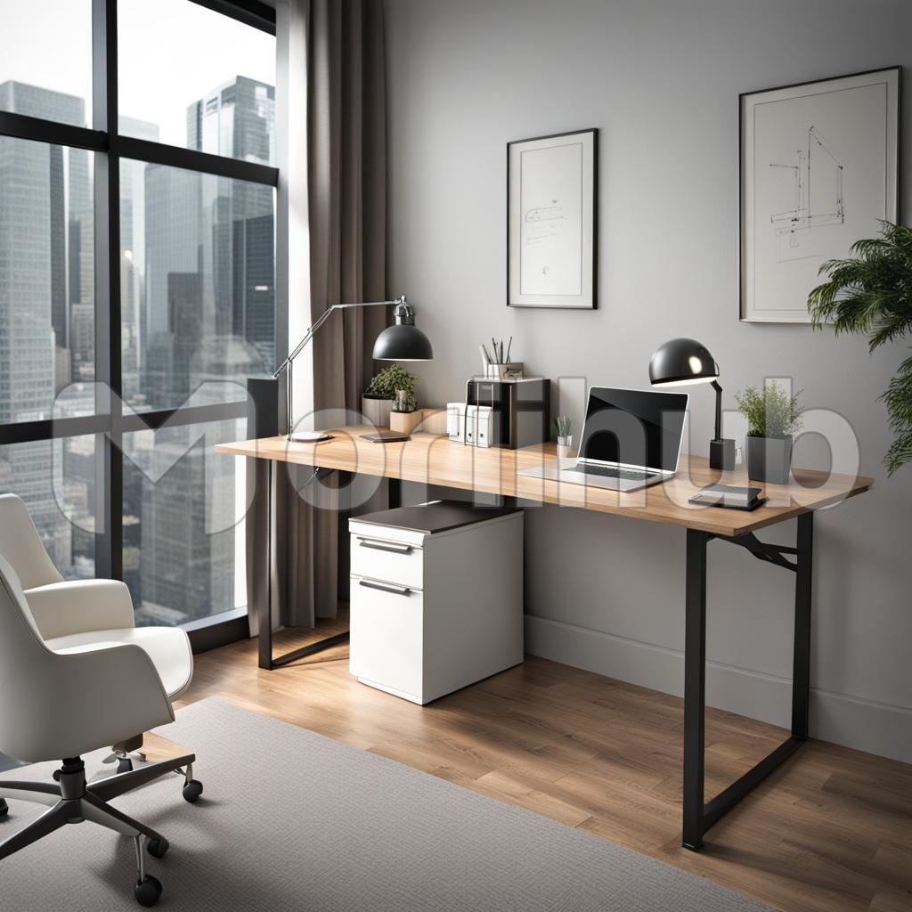 In the picture of the mini office, a sleek desk adorned with a laptop and neatly arranged stationery stands against a backdrop of neutral tones. The compact space is illuminated by a soft desk lamp, creating a cozy yet productive ambiance. A comfortable chair complements the setup, encapsulating a minimalist and efficient work environment.