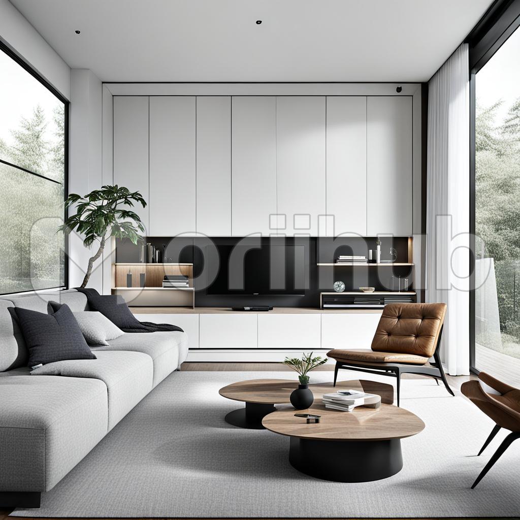 In a minimalist living room, simplicity reigns supreme. Clean lines and uncluttered spaces define the decor, with neutral tones dominating the palette. A sleek sofa sits against a bare wall, complemented by a simple coffee table adorned with a single decorative piece. Natural light floods the room through large windows, accentuating the minimalist aesthetic. Every element serves a purpose, creating a serene and harmonious atmosphere conducive to relaxation and contemplation.