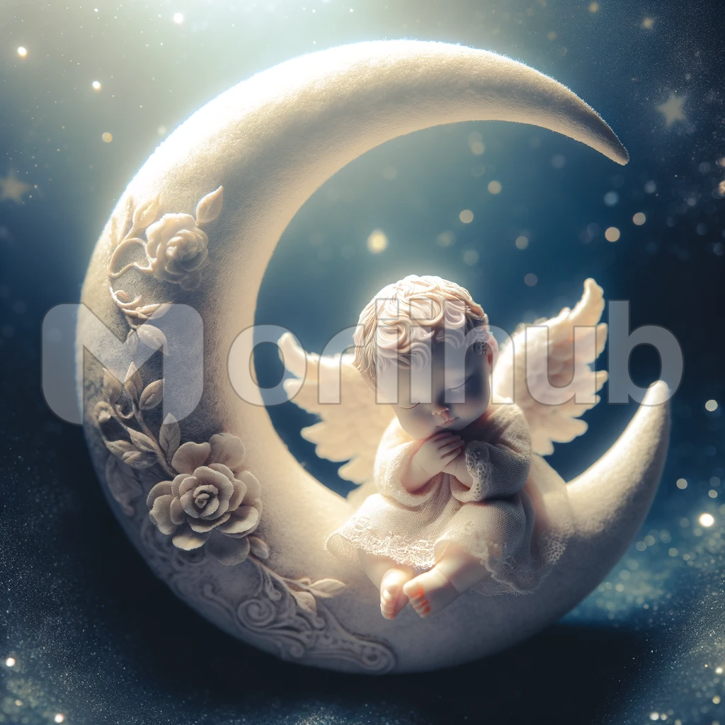 In the ethereal embrace of a tranquil night, a baby angel bathes in the soothing glow of the moonlight. With dainty, delicate wings, the cherubic figure is nestled within the crescent moon’s cradle. Serenity envelops this whimsical tableau, as the celestial being radiates an aura of enchantment and heavenly grace.