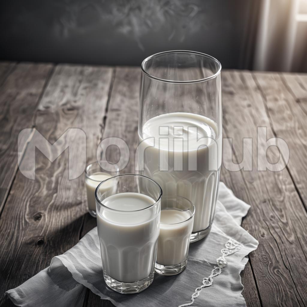 A glass cup filled with milk on a table evokes a simple yet comforting scene. The transparent vessel showcases the creamy white milk, reflecting ambient light and creating a serene ambiance. Its presence suggests a moment of pause in a busy day, inviting a sip of nourishment and tranquility. The smooth surface of the table complements the glass, emphasizing the purity and freshness of the drink. This tableau captures a timeless image of domesticity and sustenance, where the humble act of enjoying milk becomes a peaceful ritual amid daily routines.