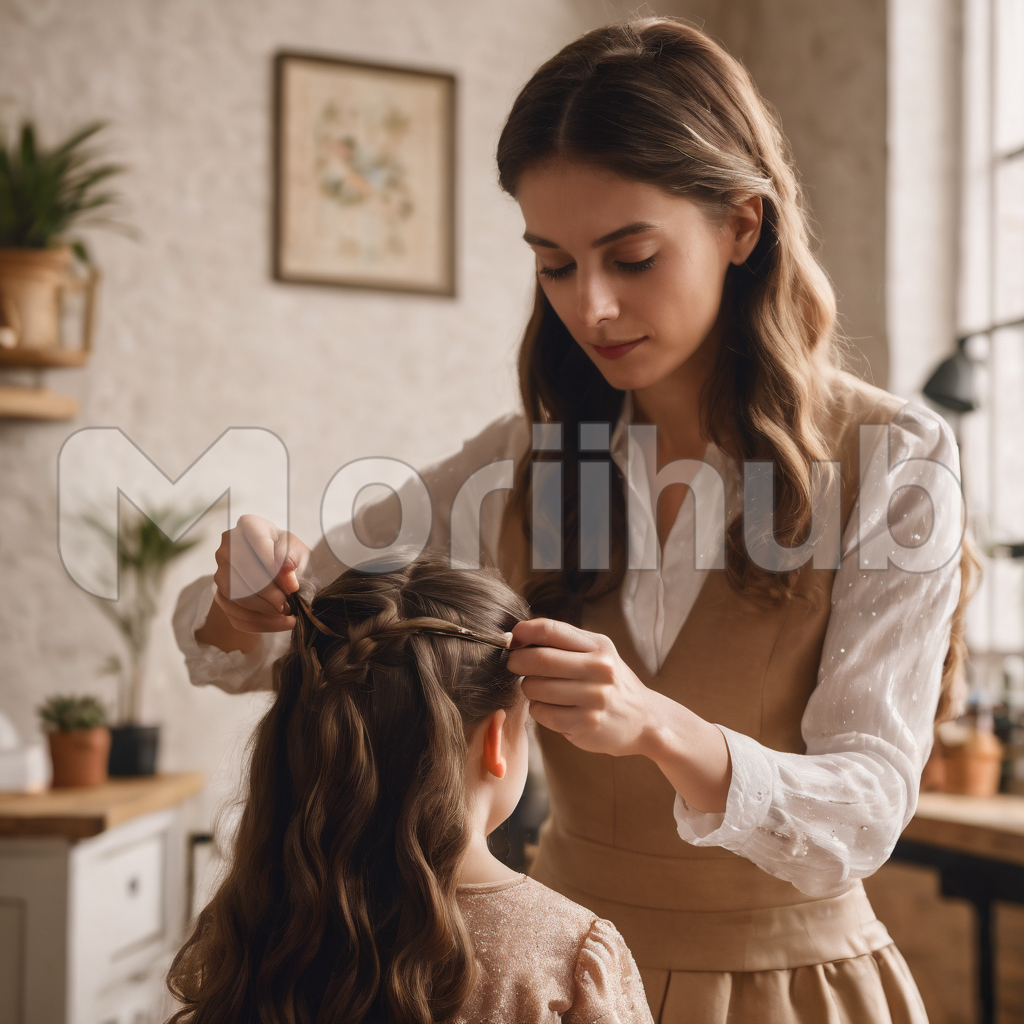 In the morning glow, a devoted mom meticulously tends to her daughter’s hair. With gentle strokes, she unravels each knot, her fingers weaving through strands with practiced ease. Laughter fills the room as they share quiet moments, the bond between them growing stronger with each loving touch, creating a memory woven into the fabric of their mornings.