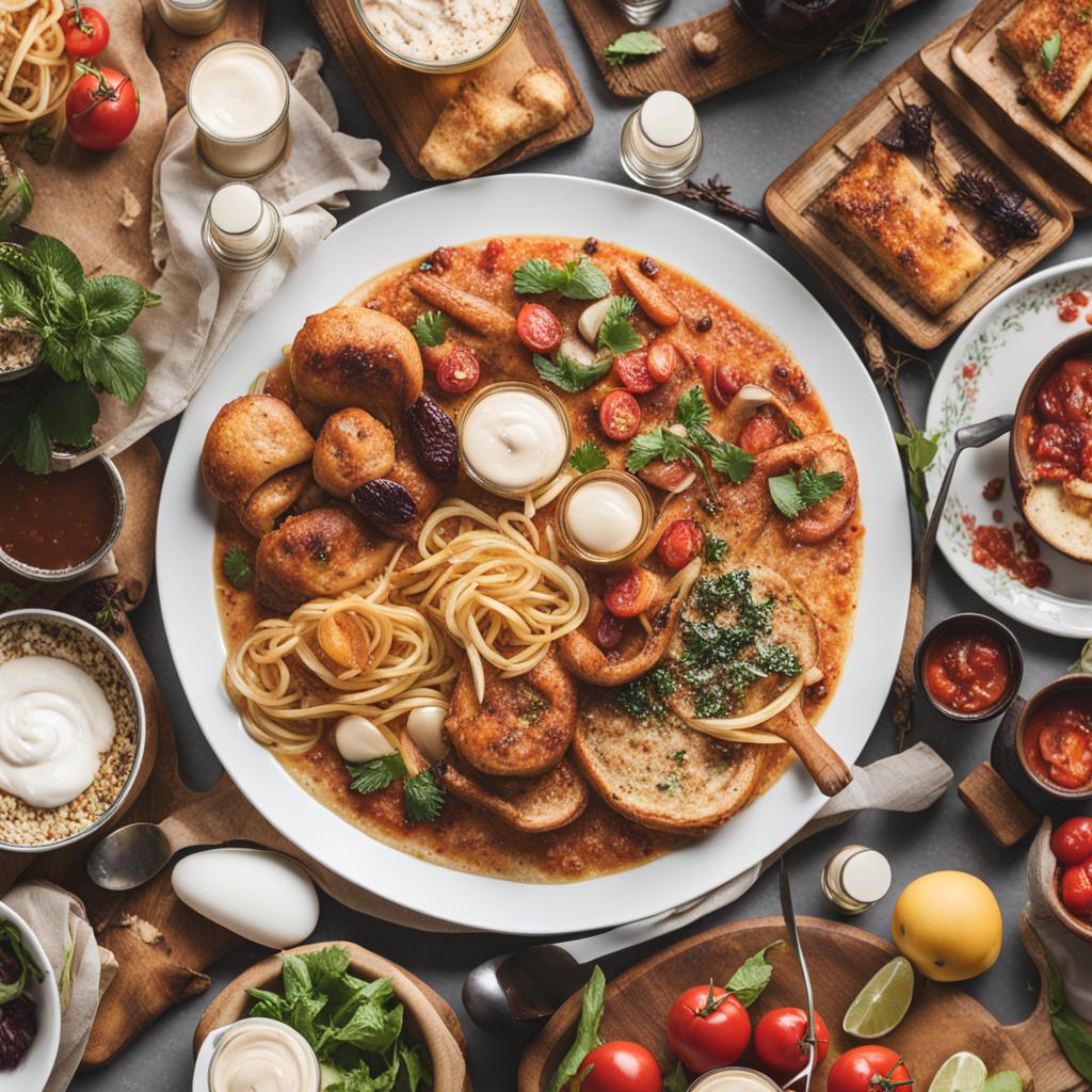 The table is a feast for the senses, a mosaic of culinary delights. Aromatic steam rises from dishes, tempting taste buds with a symphony of flavors. Colors dance across plates, vibrant and inviting. The meticulous arrangement transforms the table into a canvas, where each dish tells a story of skillful preparation and gastronomic pleasure. The clinking of cutlery and the murmur of appreciation create a lively soundtrack to this culinary spectacle, making the table not just a place to eat but a stage for a sensory celebration.