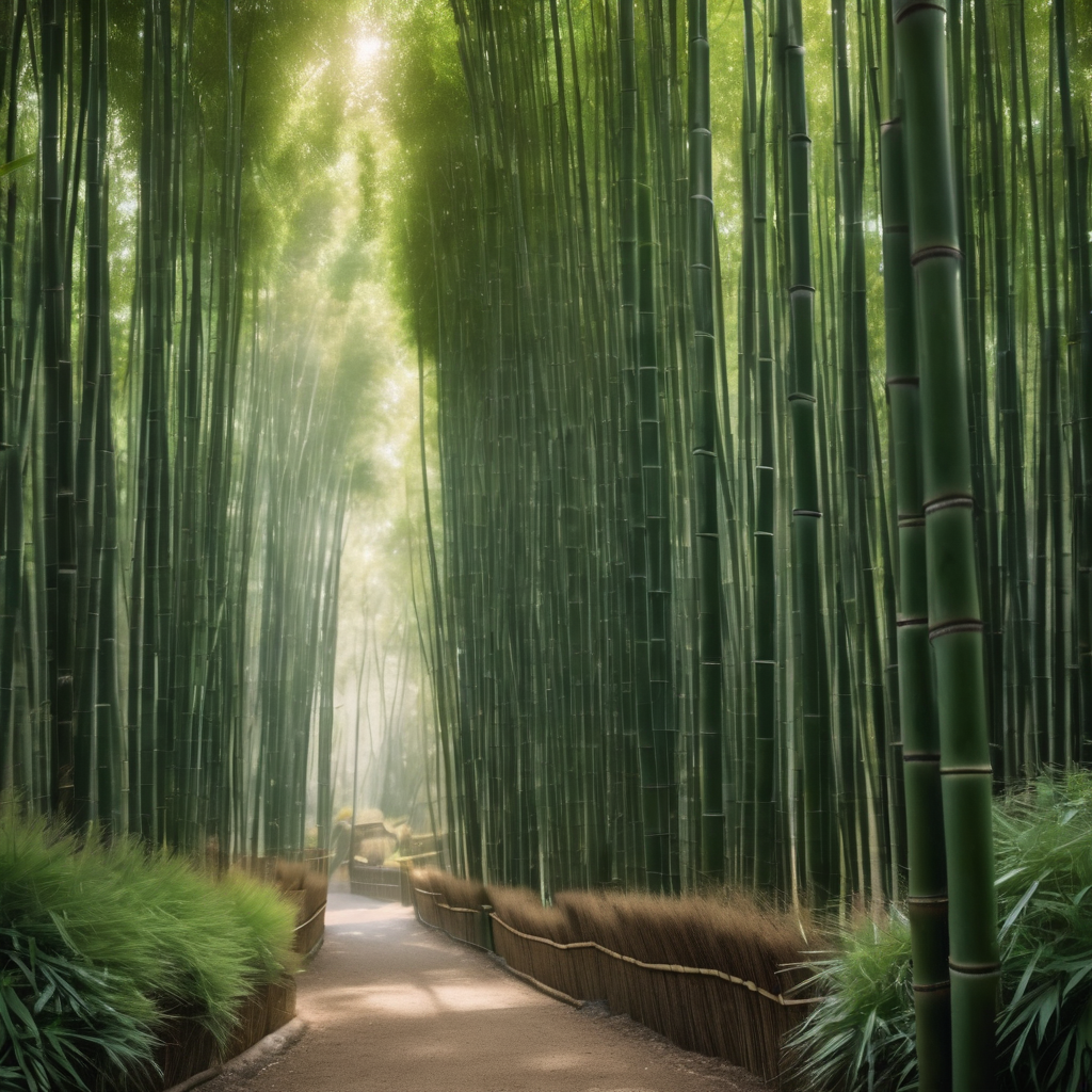 Amidst a tranquil wilderness, a bamboo forest unfurls, painting a scene of serene elegance. Towering bamboo stalks rise toward the sky, forming a verdant canopy that filters sunlight into dappled patterns on the forest floor. The rustling leaves and gentle creaking of bamboo in the breeze create a soothing symphony of nature’s own composition. Underfoot, a lush carpet of fallen leaves and moss adds to the enchantment, while the forest’s hushed aura beckons visitors into a world of tranquility and timeless beauty.
