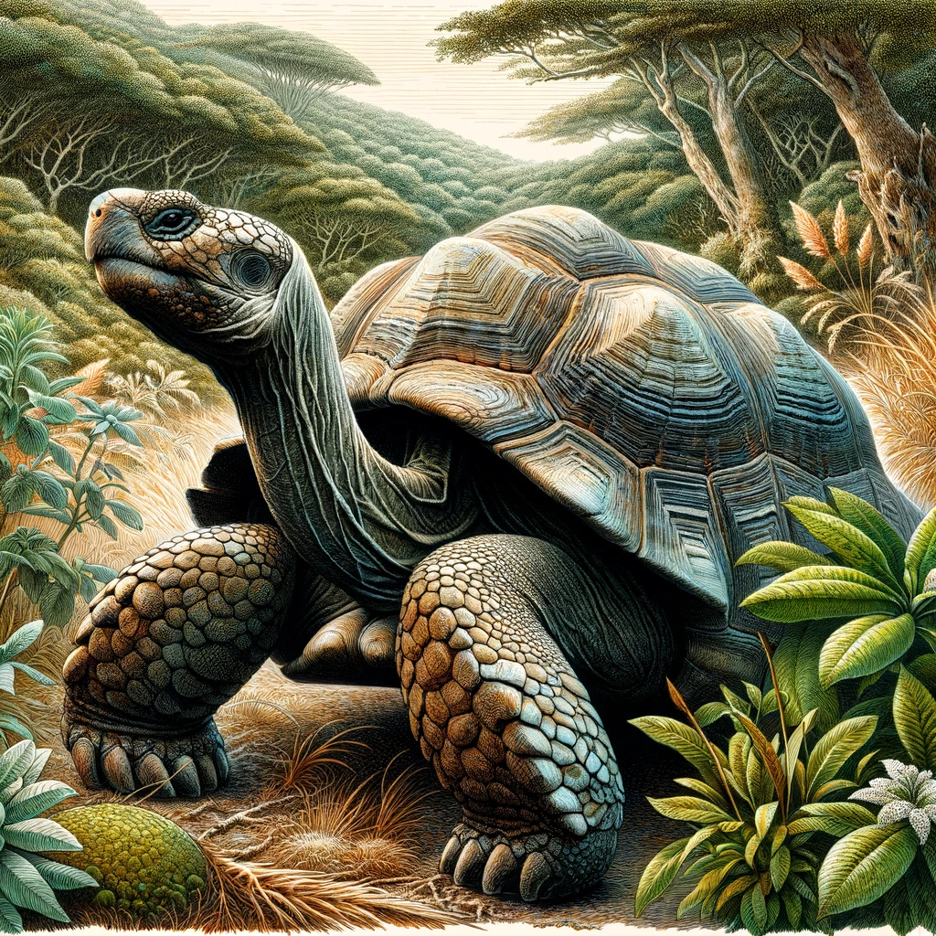 In its natural habitat, a tortoise exudes majestic and ancient allure. Its weathered shell bears testament to the passage of time, each groove a story of resilience and wisdom. Surrounded by the embrace of nature, it moves with deliberate grace, a living relic embodying the beauty of the ages.