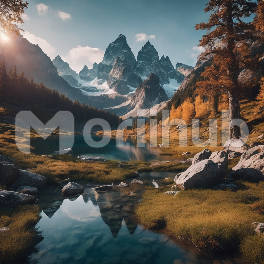 A gentle stream meanders through a serene landscape, its clear waters glistening under the sunlight. Sparse patches of vibrant greenery dot the surroundings, adding touches of color to the tranquil scene. In the distance, a majestic mountain rises proudly, its peaks reaching towards the sky. The soft murmur of the flowing water blends harmoniously with the occasional rustle of leaves, creating a soothing melody that epitomizes the beauty of nature’s simplicity.