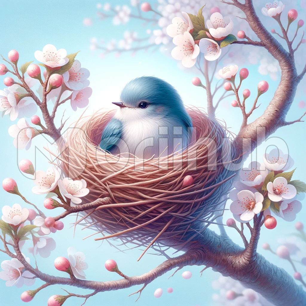 In this tranquil tableau of nature, a small and delicate bird finds solace in its carefully crafted nest. Its soft feathers, a soothing blend of blue and white, exude a sense of serenity. The bird nestles snugly within the intricate embrace of twigs and leaves, a symbol of the innate bond between creature and habitat. It is a moment frozen in time, a testament to the delicate beauty and fragility of life in the wild, where simplicity and grace reign supreme.