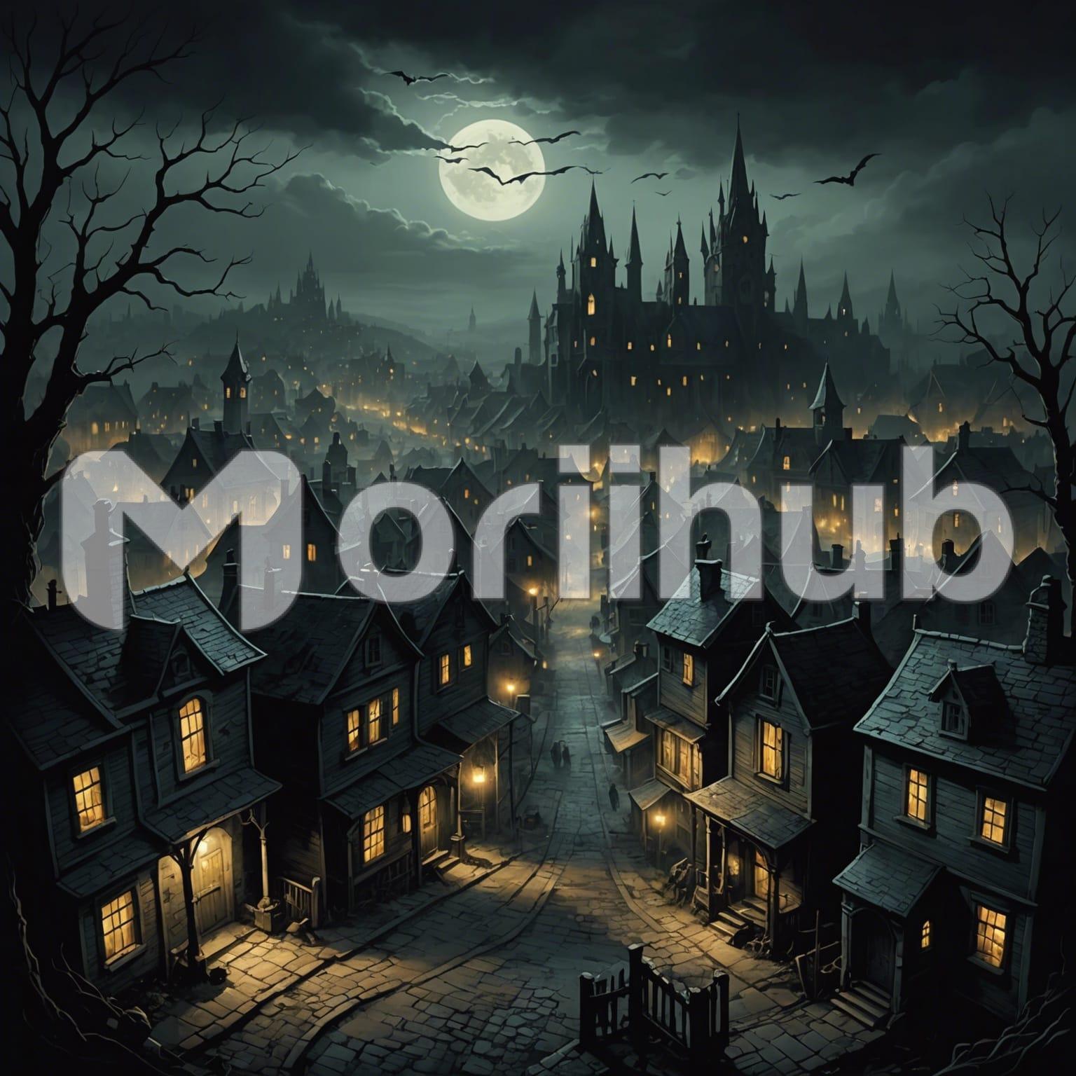 Beneath the veiled embrace of night, the town glimmers with a gentle luminescence, its buildings adorned with twinkling lights that pierce the darkness. Amidst the celestial dance, a distant castle perches atop a hill, its silhouette a sentinel against the night sky. Veiled in wisps of cloud, the moon casts a soft, ethereal glow upon the scene, illuminating the cobblestone streets below. Shadows waltz with the gentle breeze, whispering secrets of ages past as the town slumbers under the watchful eye of the lunar guardian.