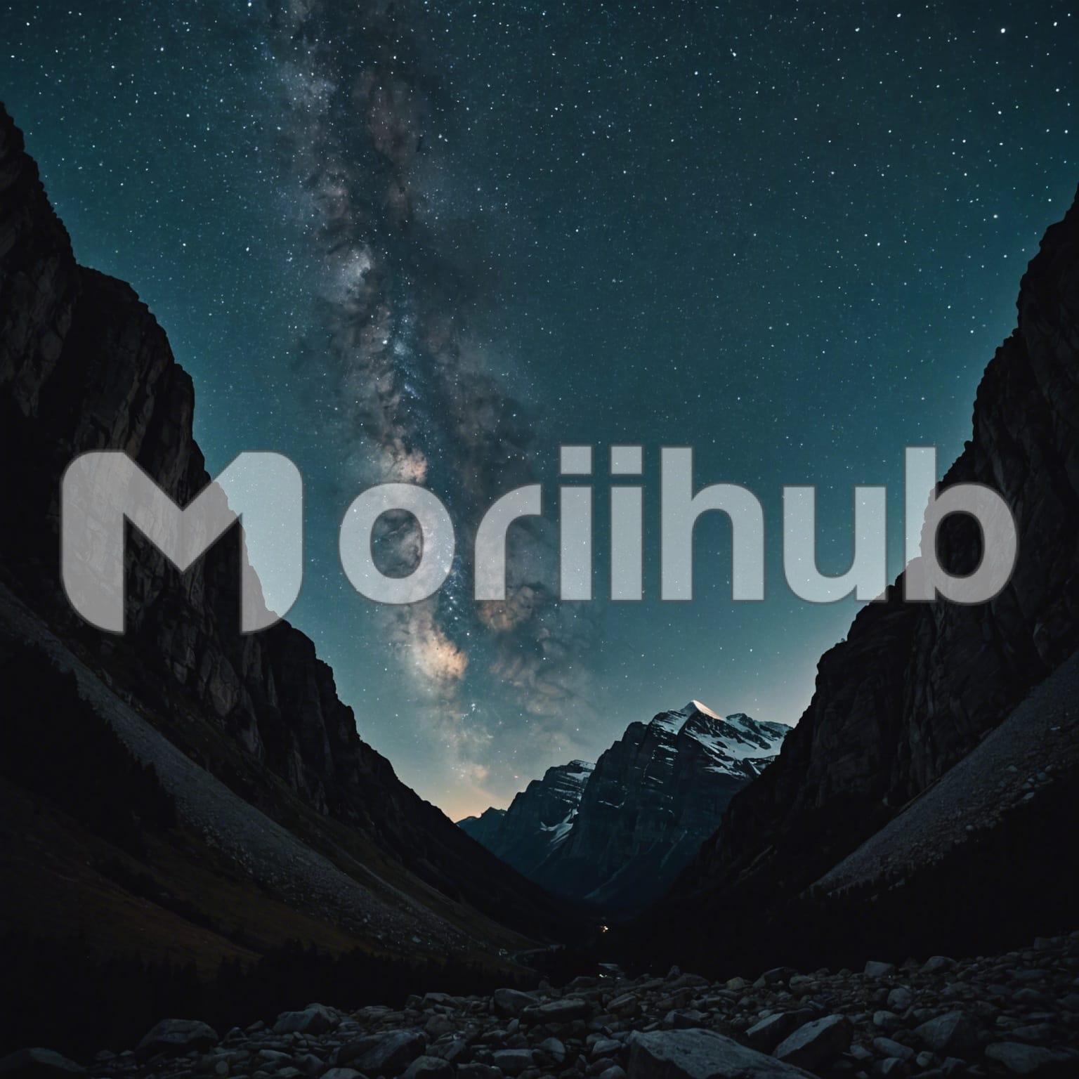 In the distance, a majestic mountain rises proudly against the backdrop of a starry sky. Its rugged silhouette cuts a striking figure against the vast expanse of darkness, its peaks reaching towards the heavens. Above, the celestial canopy is ablaze with countless stars, their shimmering brilliance casting a soft glow over the landscape below. Each twinkling light seems to whisper secrets of the cosmos, while the mountain stands as a silent sentinel, bathed in the ethereal glow of the night, a timeless symbol of strength and resilience.