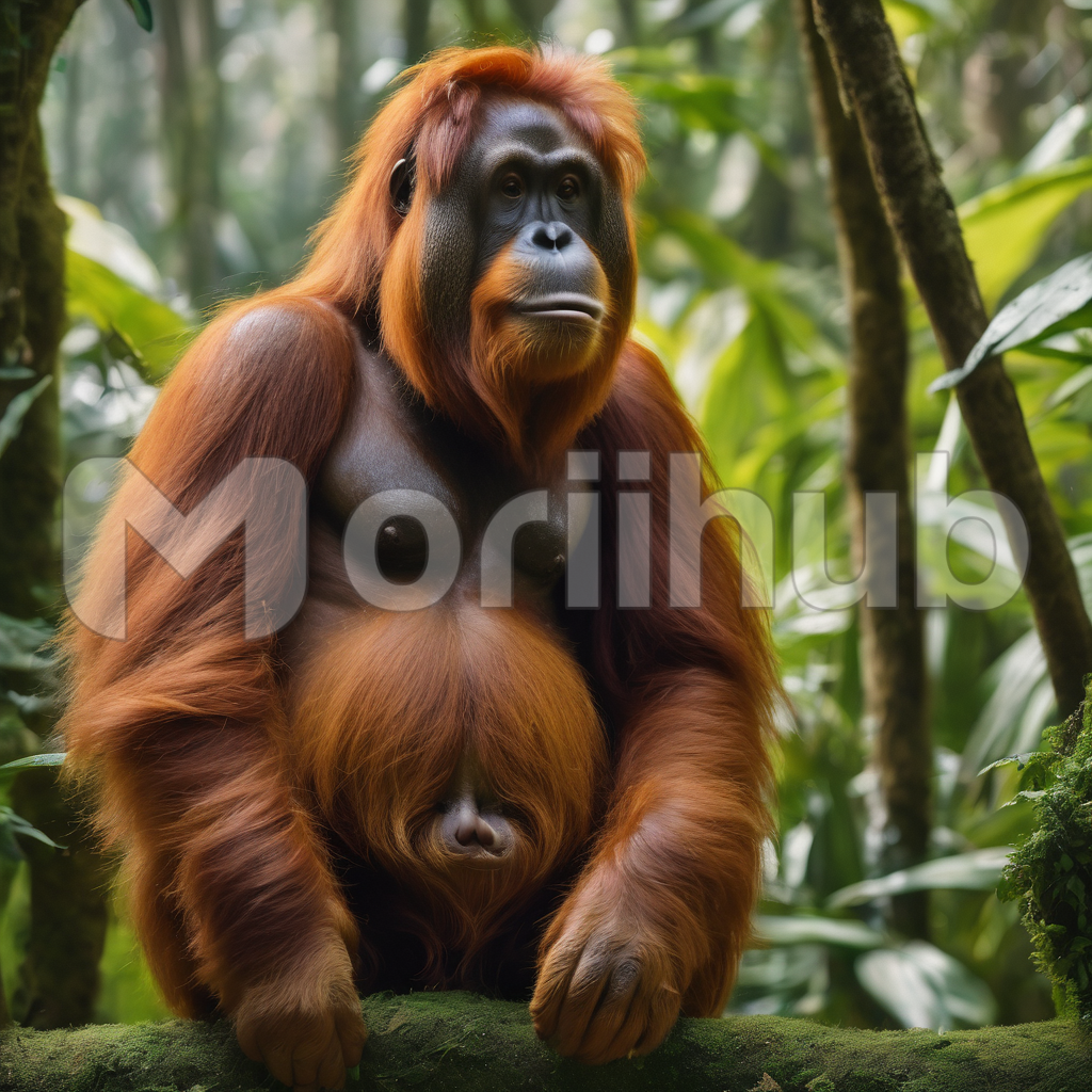 With a coat of warm, tawny orange, the orangutan exudes affectionate charm. Its expressive eyes hold a depth of emotion, reflecting intelligence and a gentle spirit. Playful in its movements, the orangutan’s nimble fingers convey a tender touch as it interacts with its surroundings, radiating an endearing and charismatic presence.