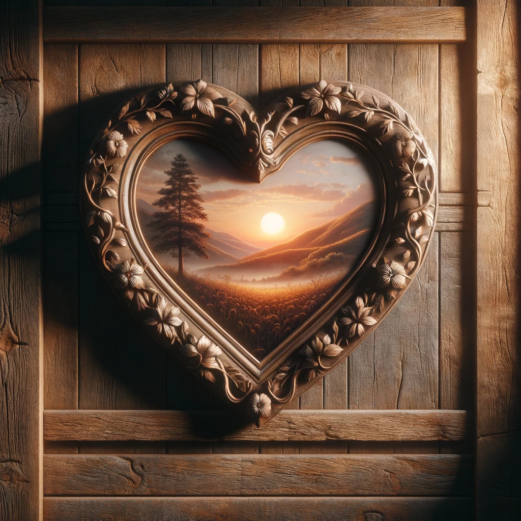 The room exudes warmth and charm, adorned with soft lighting and plush furnishings. Against one wall hangs a grand, ornate frame, commanding attention. Within its confines, the word ‘LOVE’ blossoms, its letters intertwining in a mesmerizing dance of elegance and emotion, radiating the room with a palpable sense of affection and tenderness.