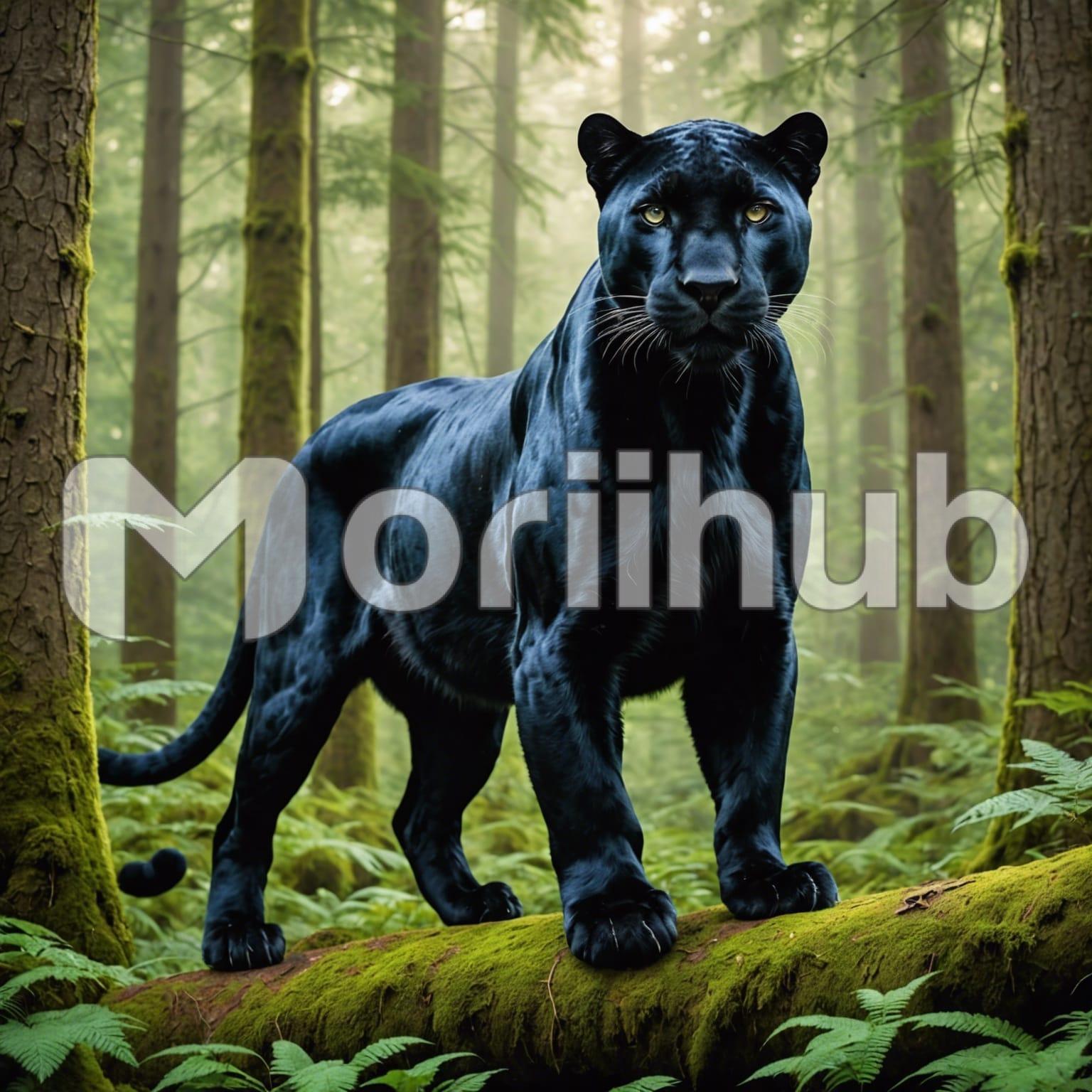 In the depths of the woods, a black panther prowls with silent grace, its sleek form melding seamlessly with its surroundings. Golden eyes gleam with feral intensity, alert to every sound and movement in its domain. Muscles ripple beneath its ebony fur as it navigates the dense undergrowth with effortless agility. The air is charged with anticipation, a palpable sense of the wildness that courses through the panther’s veins. In this untamed realm, it reigns as a solitary hunter, a master of stealth and predator of the forest.