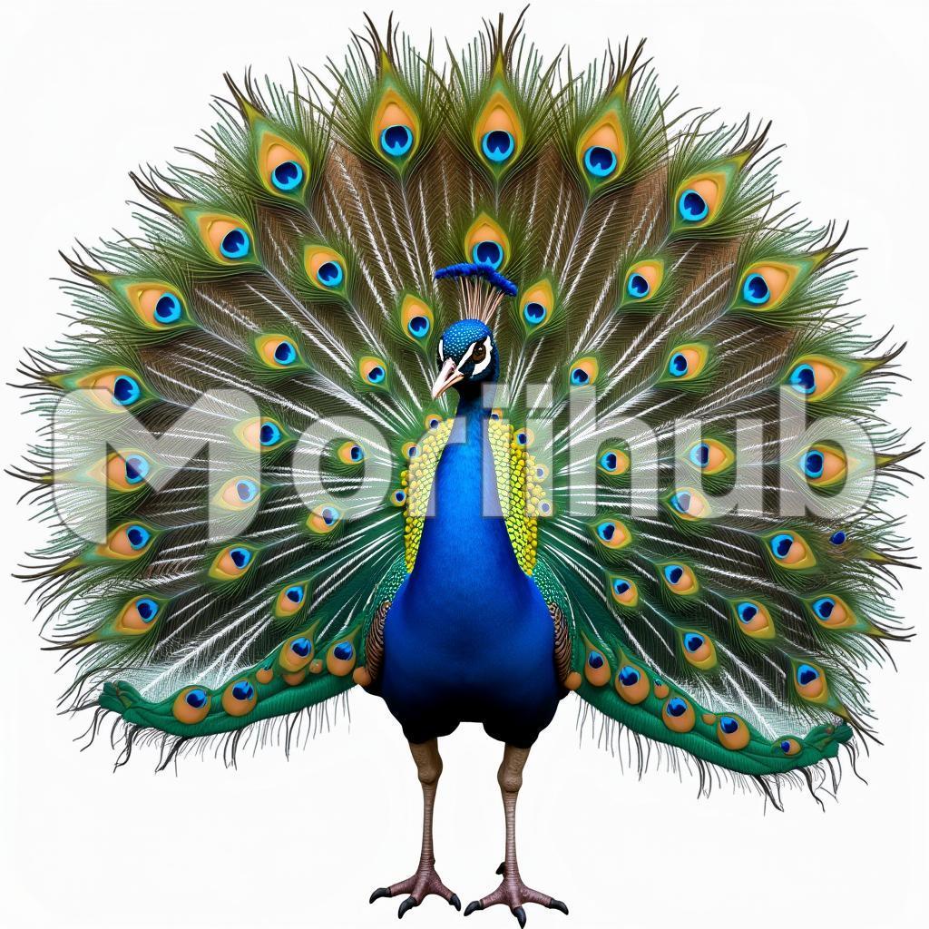 A stunning painting of a peacock captures the essence of this magnificent bird with remarkable detail. The peacock is depicted in full display, its plumage radiating intricate patterns that showcase its natural beauty. The eye-catching tail fans out elegantly, adorned with mesmerizing designs that draw the viewer’s gaze. Set against a plain background, the peacock’s form stands out vividly, enhancing its regal presence. This artwork celebrates the grace and splendor of nature, inviting admiration and appreciation for the bird’s beauty and elegance.
