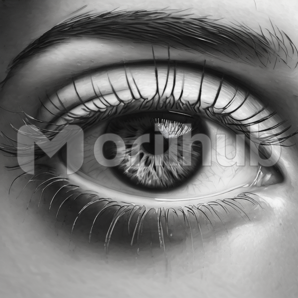 A pencil sketch delicately captures the essence of a lady’s eye, each stroke revealing the nuances of her gaze. The meticulous details trace the elegant curve of her eyebrow, the subtle intricacies of her lashes, and the depth within her eye. Through the monochromatic dance of graphite, the sketch breathes life into a singular moment, where the intensity of her gaze becomes an intimate connection between art and viewer, etched in the strokes of a pencil.