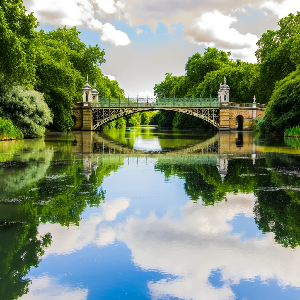 In this picturesque scene, a graceful stone bridge arches over a tranquil body of water, mirroring the expansive sky above. Its elegant structure stands as a testament to timeless craftsmanship, blending seamlessly with the natural surroundings. As gentle ripples kiss the bridge’s foundation, serenity permeates the air, inviting contemplation and awe.