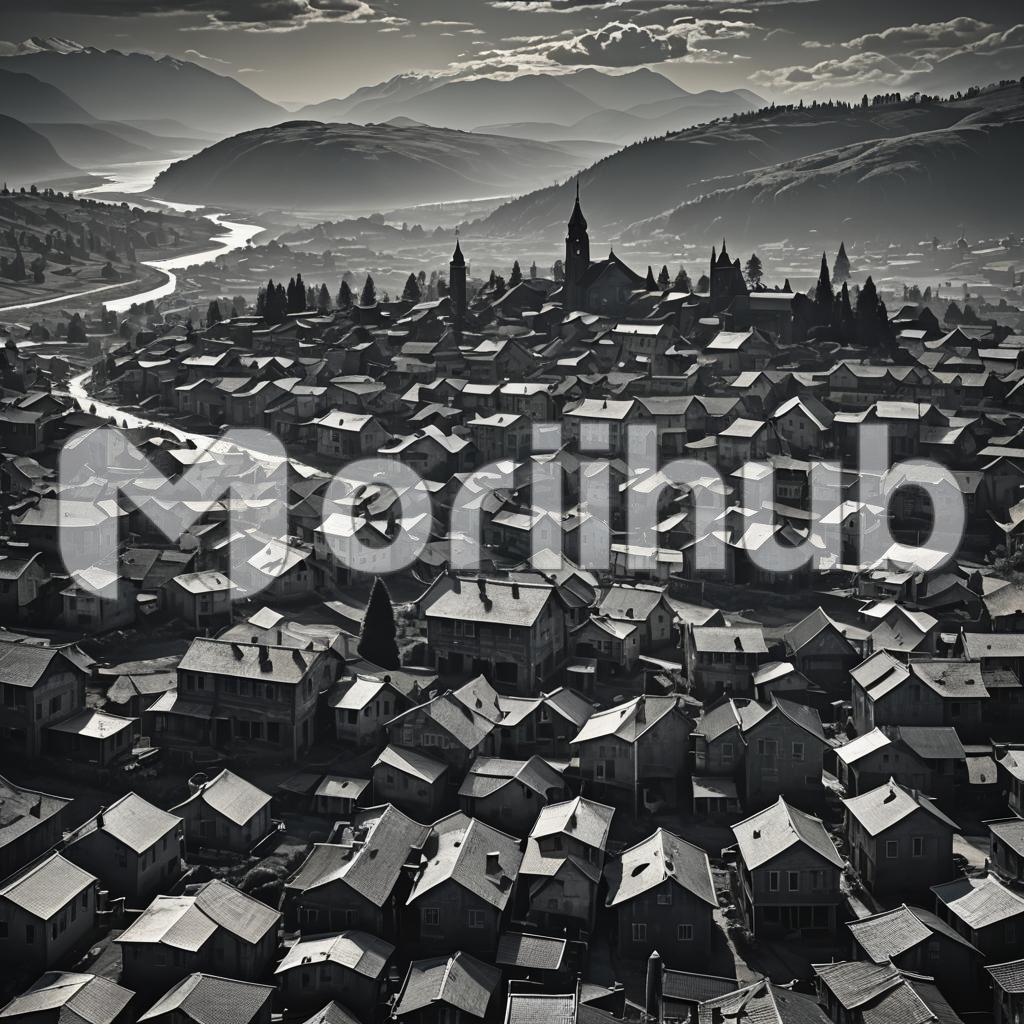 As dawn breaks, the silhouette of a remote city emerges on the horizon, shrouded in a tranquil, early morning mist. The outlines of tall buildings and quaint houses are faintly visible, their shapes softened by the gentle light of the rising sun. Towering trees and rolling hills frame the city, adding a touch of natural beauty to the urban landscape. The city seems to be waking slowly, with a serene stillness hanging in the air. The soft pastel hues of the sky blend with the shadows, creating a picturesque scene that captures the quiet, untouched beauty of this distant place. The peacefulness of the moment offers a stark contrast to the bustling life that will soon fill the streets.