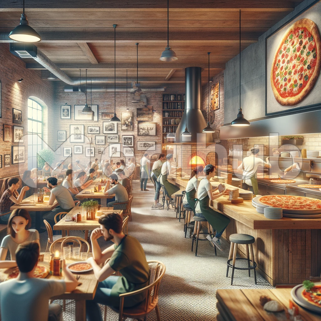 In the heart of this bustling pizza shop, the air is electrified with energy and the irresistible aroma of delectable pizza. The interior is a warm, inviting haven, where rustic charm meets casual comfort. Friendly laughter and animated conversations fill the space as patrons savor their slices of heaven, creating an atmosphere that feels like a home away from home. This pizzeria embodies the essence of conviviality, making it a beloved gathering place for pizza enthusiasts and friends alike.