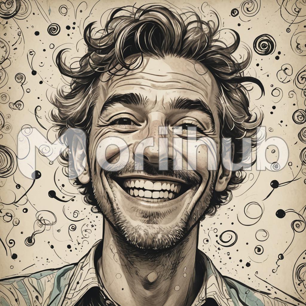 In the abstract composition, a man’s smile beams with infectious warmth, radiating joy amidst a myriad of playful drawings scattered around him. Each whimsical doodle adds a touch of whimsy and spontaneity to the scene, expressing a sense of creative energy and freedom. Against this backdrop, the man’s smile takes on a deeper resonance, reflecting the boundless optimism and childlike wonder found within. In this dynamic portrayal, the fusion of his happiness with the surrounding artwork creates a kaleidoscope of positivity and imagination.