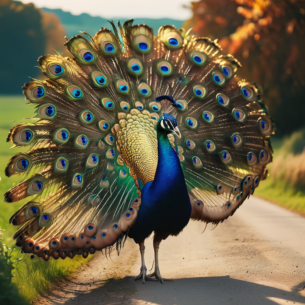 Amidst lush greenery, a majestic peacock unfurls its vibrant plumage, a kaleidoscope of hues that dazzle the eye. Each iridescent feather gleams with an opulent sheen, reflecting the verdant surroundings. With regal grace, the peacock struts, its long tail trailing behind like a magnificent train. Against the backdrop of nature’s verdant embrace, it stands as a living masterpiece, a symbol of beauty and elegance in the heart of the wilderness.