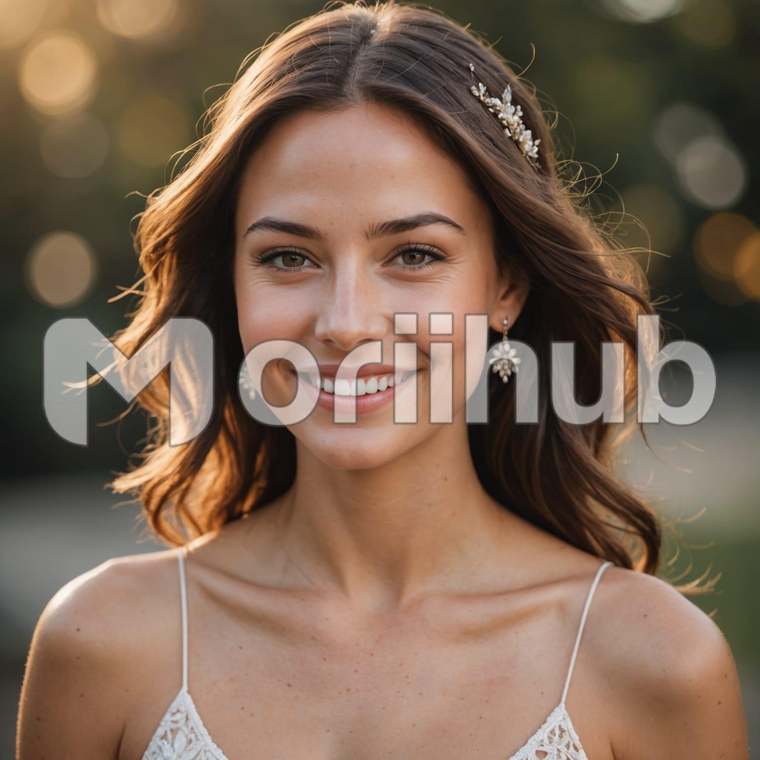 A stunning woman radiates joy with a captivating smile that lights up her face. Her eyes sparkle with warmth and kindness, drawing others in with their magnetic charm. Her features, sculpted with grace, exude confidence and elegance. Whether framed by flowing hair or adorned with a subtle touch of makeup, her natural beauty shines effortlessly. Her smile, genuine and infectious, reflects a spirit of inner happiness and positivity. This scene captures a moment of timeless allure and inner radiance, celebrating the beauty found in a genuine and joyful expression.