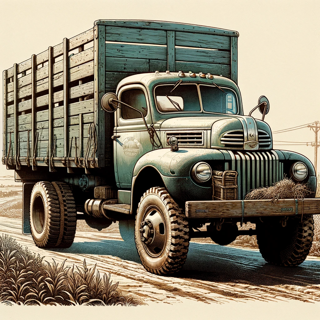 In this detailed illustration, a rugged local truck emerges as a stalwart companion of rural landscapes. Its sturdy frame, adorned with robust tires, navigates unpaved roads with ease, showcasing its practical design. Weathered yet reliable, the truck stands as a symbol of resilience, ready to tackle the challenges of rural life with unwavering determination.