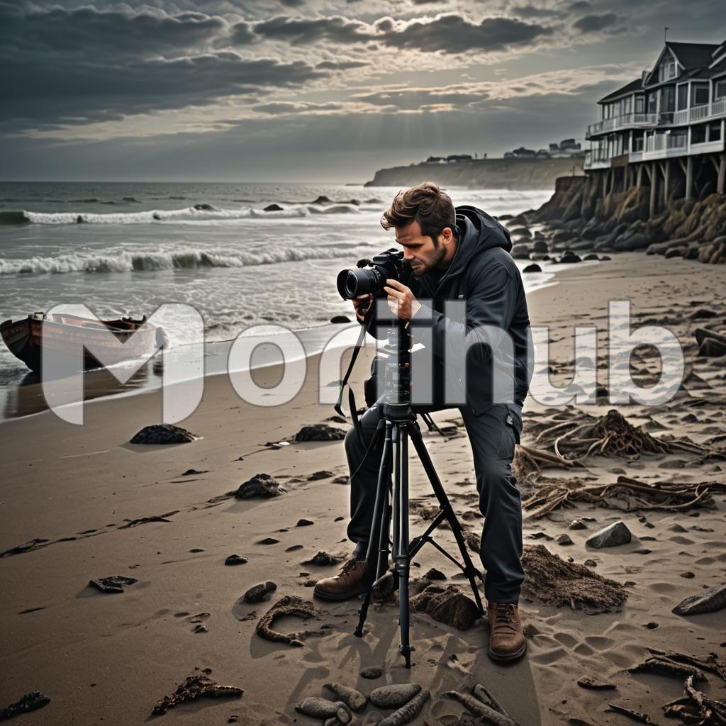 In the seaside photo, the camera man stands amidst the rugged beauty of the coastline, capturing the essence of the moment with focused intensity. His silhouette is framed against the backdrop of crashing waves and distant cliffs, a testament to his dedication to capturing nature’s raw power and serene beauty. The play of light on the water creates a dynamic contrast, highlighting his presence as he adjusts settings and angles, striving to immortalize the fleeting magic of the sea. The photo captures not only the scene before him but also the passion and skill of the photographer behind the lens, creating a narrative that merges artistry with the timeless allure of the ocean.