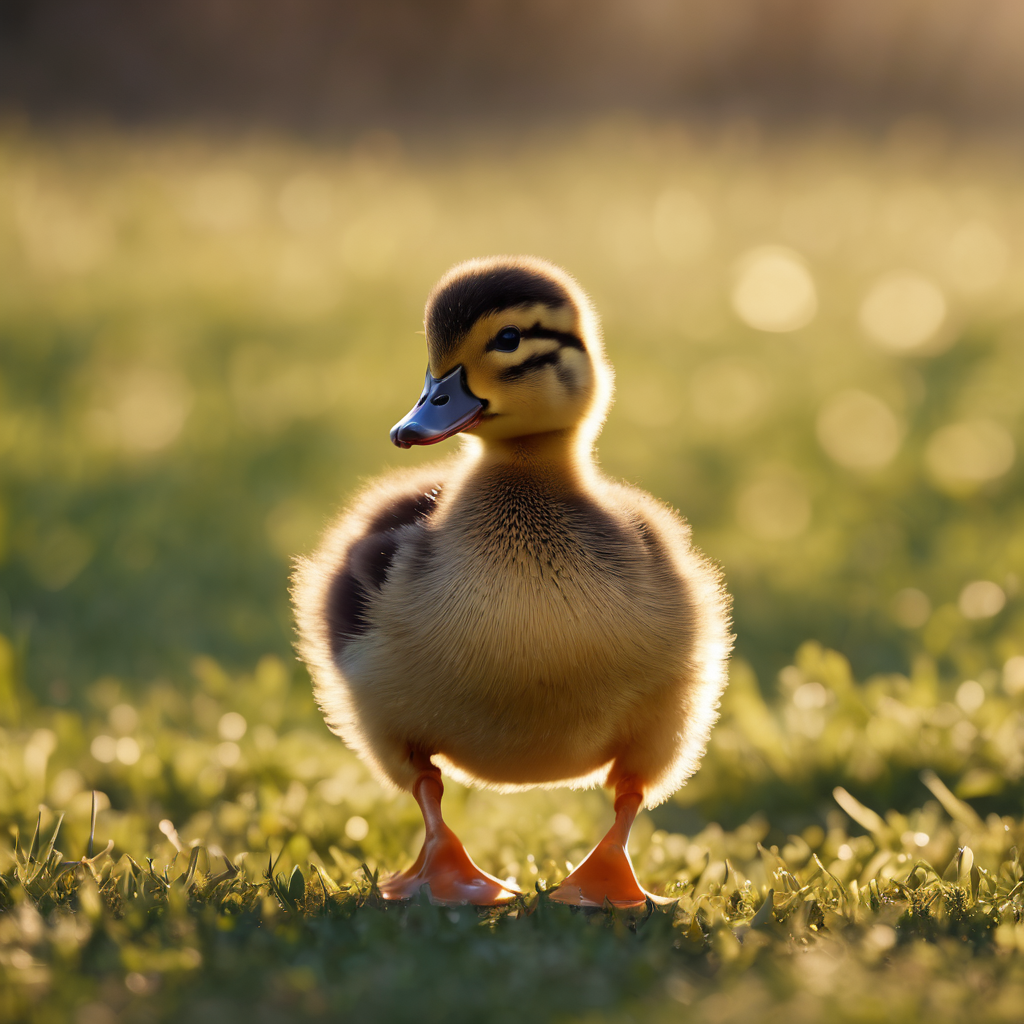 With tiny steps, a fluffy duckling explores the lush green grass, its downy feathers bouncing with each stride. Bright eyes gleam with curiosity as it ventures into the verdant expanse, a miniature explorer in a world of wonders. The soft quacking echoes gently in the tranquil surroundings, adding a touch of whimsy to the serene scene. In this idyllic moment, nature’s innocence is encapsulated by the charming presence of the tiny duckling.