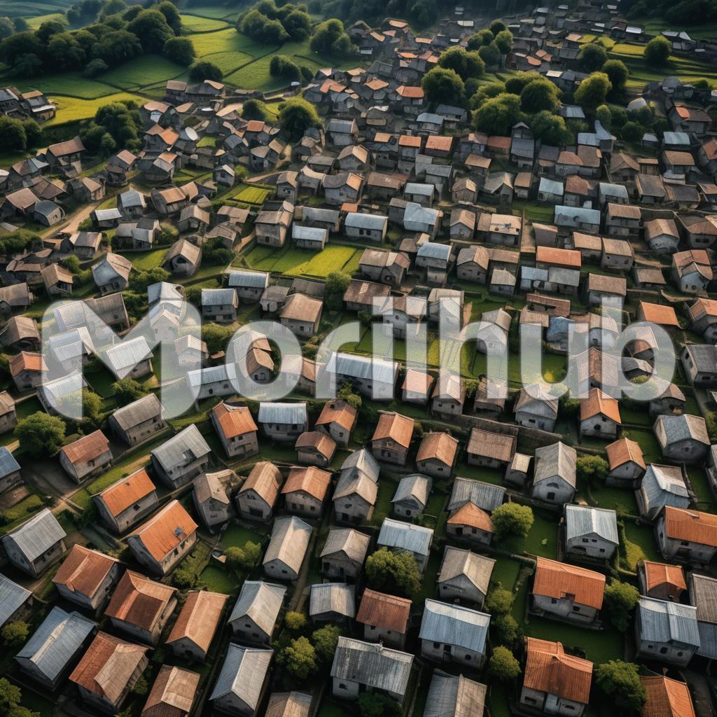 From a bird’s-eye perspective, the drone captures the essence of village life. Patchwork fields quilt the landscape, bordered by meandering roads. Tiny houses cluster around a central square, their rooftops telling stories of generations past. A lazy river snakes through, reflecting the tranquility of rural existence. Life moves slowly here, amidst the timeless beauty of nature and community.