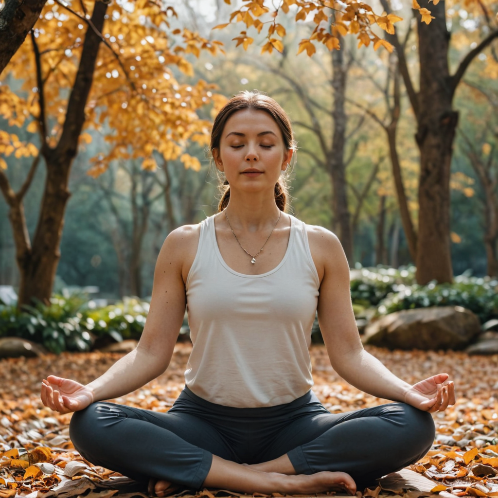 Amidst the tranquil woods, a woman sits in silent meditation, her aura blending with the serenity of nature. Surrounded by towering trees, their verdant canopy filtering dappled sunlight, she finds solace in the earthy scent of moss and soil. With closed eyes and a serene expression, she delves deep within, connecting with the quietude of the forest. In this sacred space, she discovers a profound sense of peace, lost in the timeless embrace of nature’s tranquility.