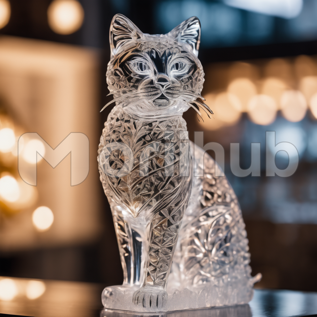Perched upon a table, an opulent crystal cat commands attention with intricate details. Its facets catch ambient light, refracting a luminous dance. The delicate craftsmanship captures feline grace, frozen in crystalline elegance. As a symbol of refined artistry, this ornate creation becomes a radiant centerpiece, embodying the fusion of sophistication and craftsmanship, a testament to the timeless allure of both crystal and feline grace.
