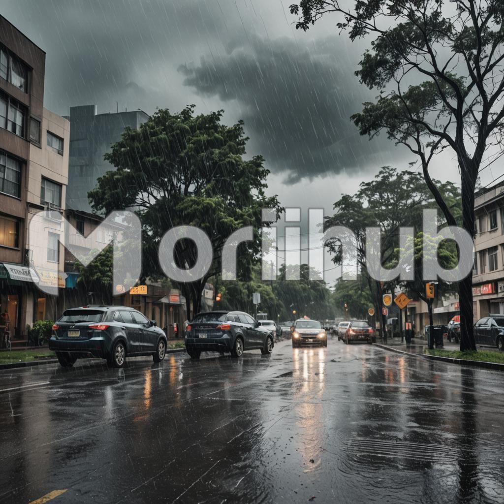 As the storm clouds gather, the streets are washed in a symphony of rain and wind. Umbrellas bloom like flowers, shielding pedestrians from the deluge. Puddles mirror the darkened sky above, reflecting flashes of lightning. Yet amidst the chaos, there’s a serene beauty, as the city is cleansed by nature’s fury. The rhythm of raindrops on pavement is a soothing melody, echoing through the urban landscape. Despite the tempest, there’s a sense of unity as strangers huddle together under awnings, sharing stories and laughter amidst the storm’s embrace.