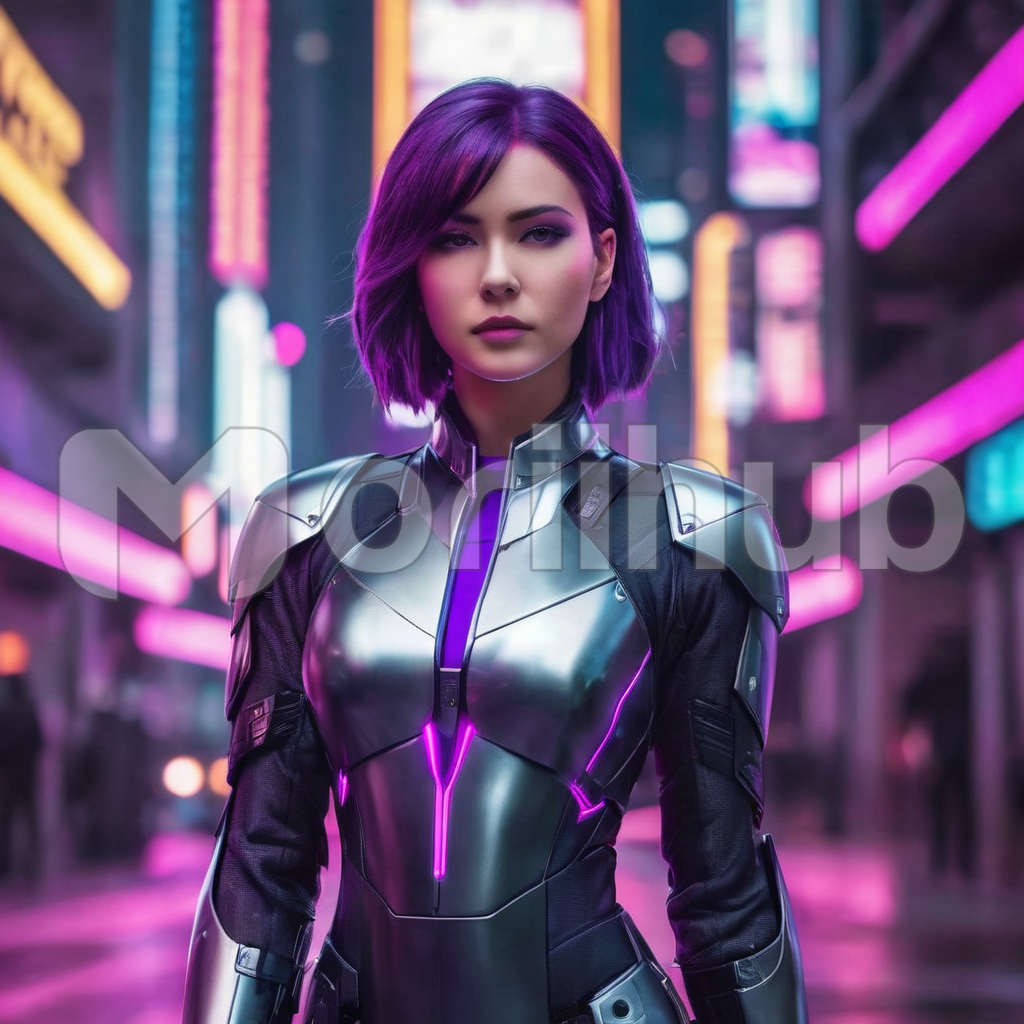 Clad in battle armor, a woman stands resolute, her gaze fixed ahead with unwavering determination. Every inch of her suit speaks of strength and readiness for the challenges that lie ahead. Behind her steely exterior lies a spirit unyielding, ready to face whatever trials may come. With a stance both powerful and poised, she embodies the courage and fortitude needed to conquer any battlefield she may encounter.