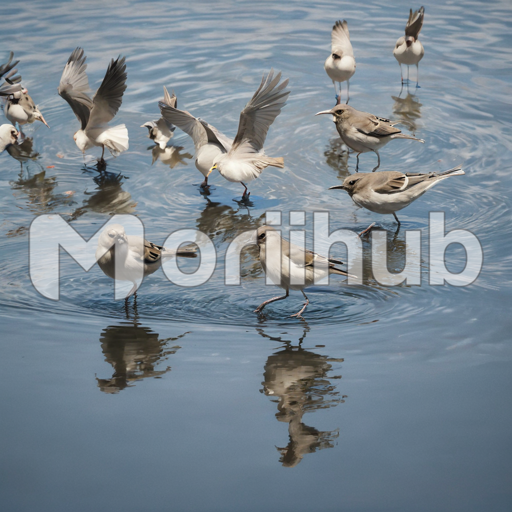 As dawn breaks, birds gracefully alight upon the tranquil surface of the water, their reflections mirrored in the stillness below. With wings outstretched, they glide across the mirrored expanse, creating ripples that echo the rhythm of their flight. Amidst the serene backdrop, they find solace and sustenance, their presence a testament to the delicate balance of nature’s harmony. With each graceful movement, they paint a picture of serenity and grace upon the canvas of the water, a fleeting moment of beauty in an ever-changing world.