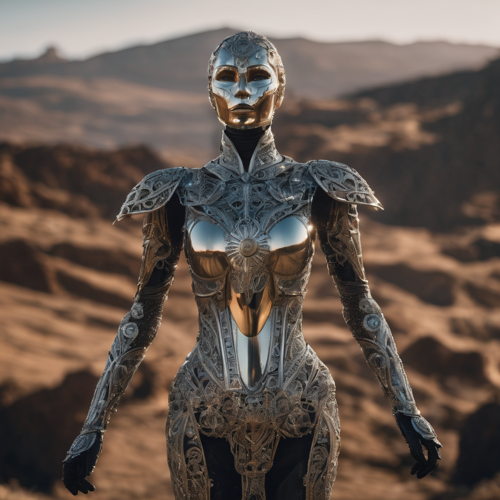 Amidst undulating hills, a solitary robot stands, its metallic frame contrasting with the natural landscape. With sensors scanning the horizon, it seems to contemplate the vastness of its surroundings. The gentle breeze rustles the grass around its feet, a reminder of the organic world it stands in. In this fusion of technology and nature, the robot stands as a silent observer, a symbol of humanity’s presence in the ever-evolving tapestry of the world.