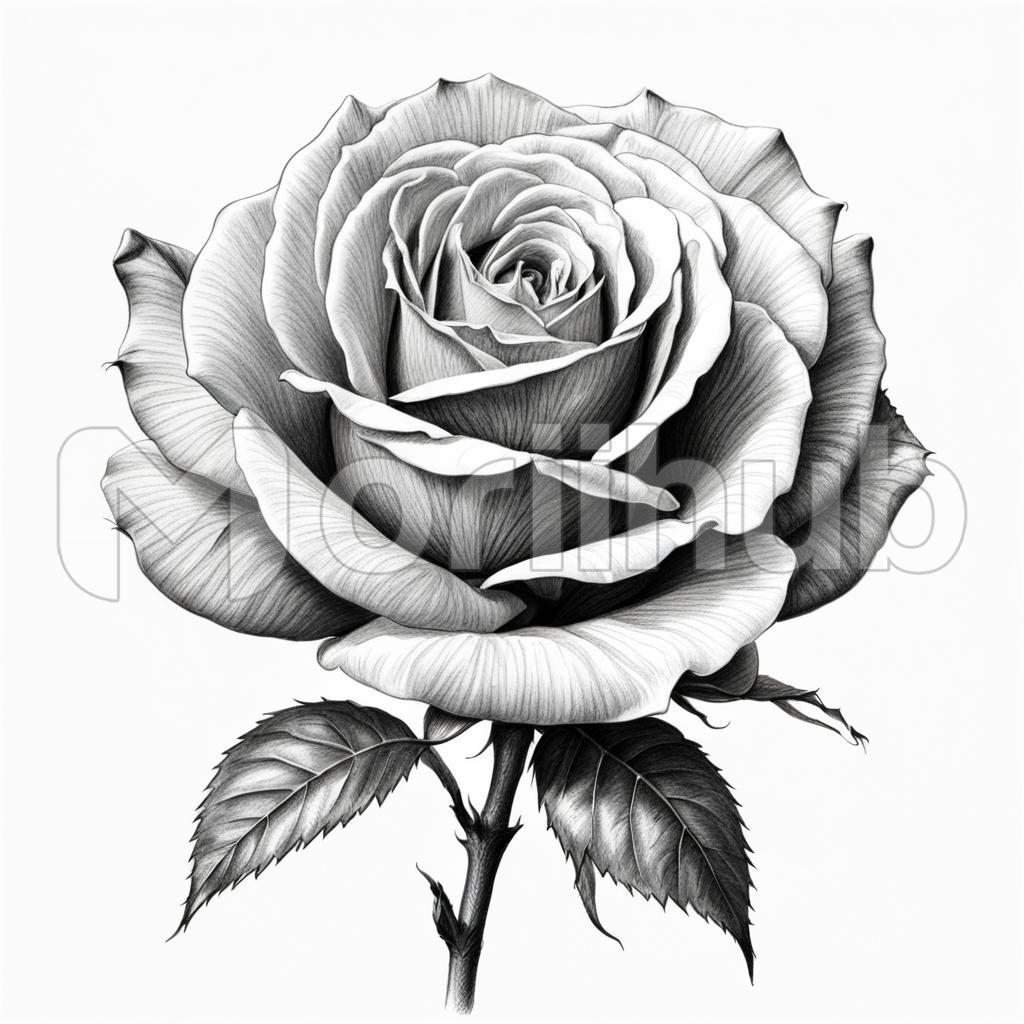 In delicate pencil strokes, a single rose blooms upon the page, its petals unfurling with exquisite detail. Each line captures the softness of its curves and the intricacy of its folds, evoking the flower’s timeless beauty. From the graceful arc of its stem to the gentle curl of its leaves, the sketch imbues the rose with a sense of delicate elegance, a testament to nature’s artistry captured on paper.