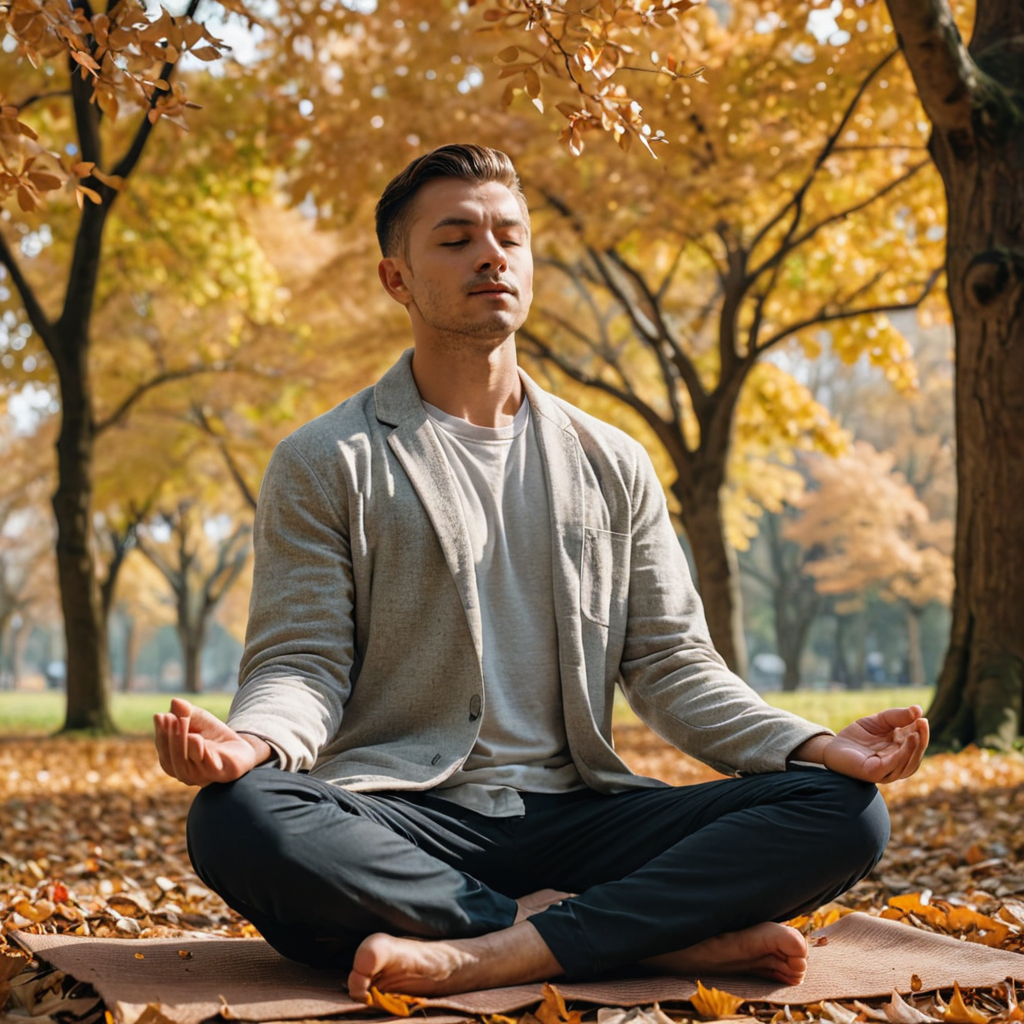 Deep within the heart of the woods, a man sits in tranquil meditation, his presence a testament to the harmony between humanity and nature. Surrounded by towering trees, their ancient branches reaching skyward, he becomes one with the whispering breeze and earthy scent of moss. With closed eyes and a serene countenance, he finds solace in the forest’s embrace, delving into a state of inner stillness amidst the verdant sanctuary of the woods.
