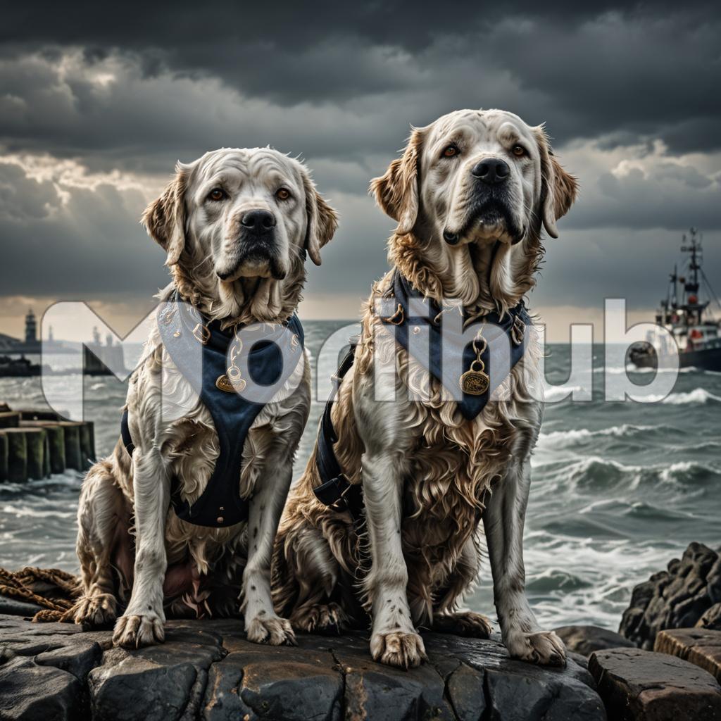 As the ship sails through the open sea, a group of sea dogs comes into sight, their presence both thrilling and nostalgic. These seasoned sailors, with weathered faces and salt-crusted beards, move with a confident grace, their eyes scanning the horizon with practiced precision. The air is filled with the scent of the ocean and the sound of creaking wood and flapping sails. Each sea dog tells a story of countless voyages, of battles fought and storms weathered. Their camaraderie is evident in their hearty laughter and shared glances, a testament to the bond forged through years of navigating the vast, unpredictable seas. This sight, a blend of adventure and tradition, evokes a deep respect for the enduring spirit of these mariners.