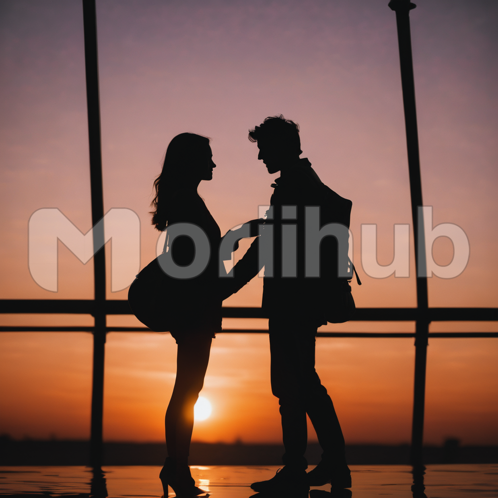 Against the canvas of a setting sun, a couple’s silhouette entwines, bathed in the warm hues of twilight. Standing closely, they share a quiet moment, embracing the beauty unfolding before them. The sun dips, casting long shadows that dance around their figures, creating an intimate tableau of love. As daylight fades, their connection deepens, and the horizon’s glow becomes a backdrop to their silent celebration, marking the end of the day in shared serenity.