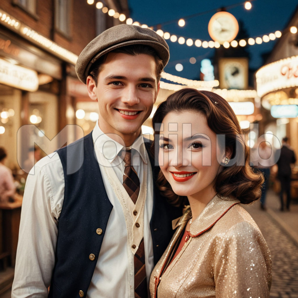 On the bustling street, a loving couple stands together, sharing a light smile. Amidst the urban chaos, they find solace in each other’s presence, creating a serene bubble of love amidst the city’s hustle. Passersby fade into the background as their gazes meet, sharing a silent conversation of love and understanding. In this fleeting moment, the street transforms into a stage for their shared joy and connection.
