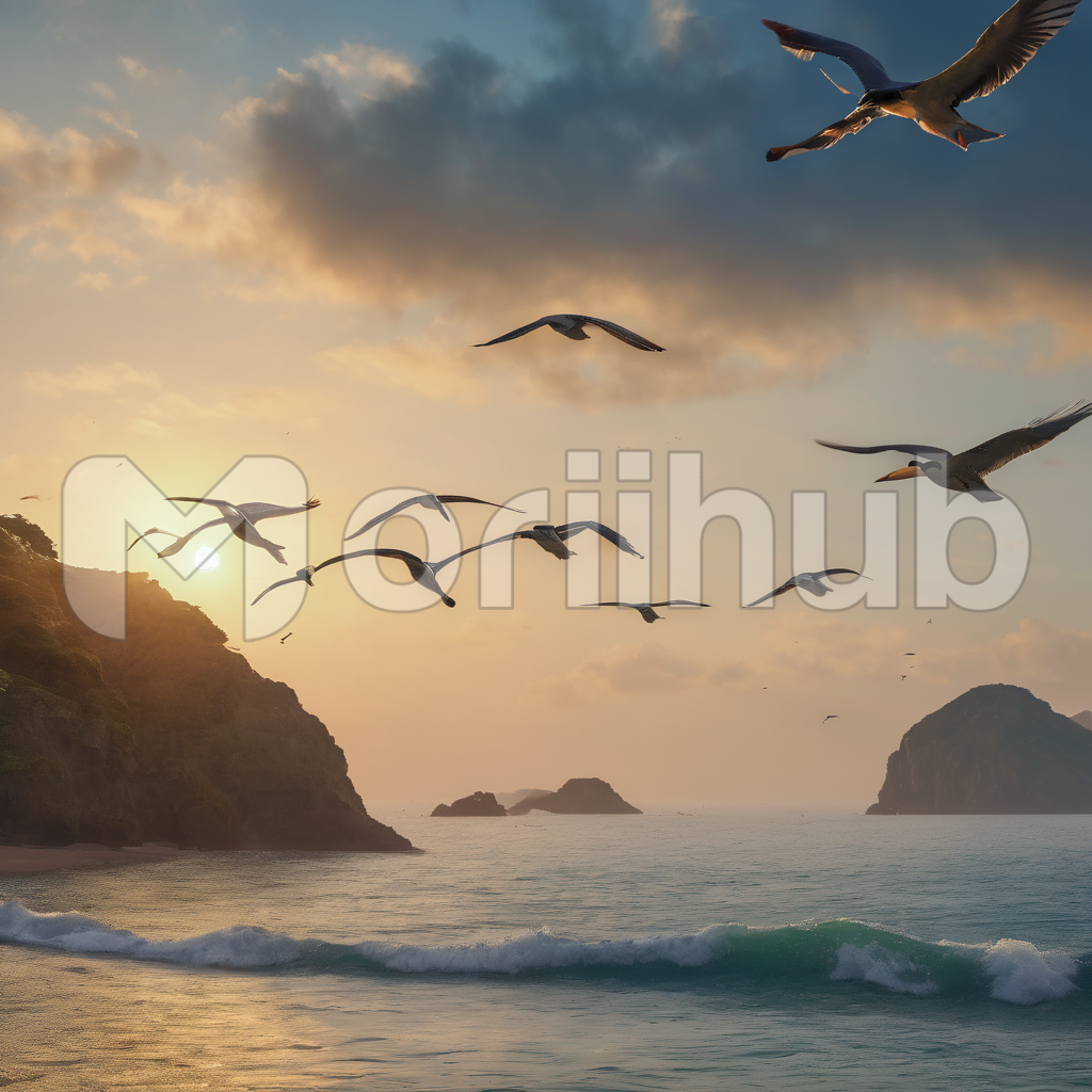 Above the vast expanse of the ocean, a mesmerizing spectacle unfolds as a multitude of birds takes to the sky. Their wings, a symphony of motion, create a living tapestry against the boundless blue. The birds, from elegant seagulls to majestic albatrosses, dance in perfect harmony, their silhouettes reflecting on the glistening surface below. As they soar on the gentle ocean breeze, their calls resonate, blending with the rhythmic lull of the waves. It’s a breathtaking display of nature’s grace, a reminder of the freedom and beauty that adorn our planet.