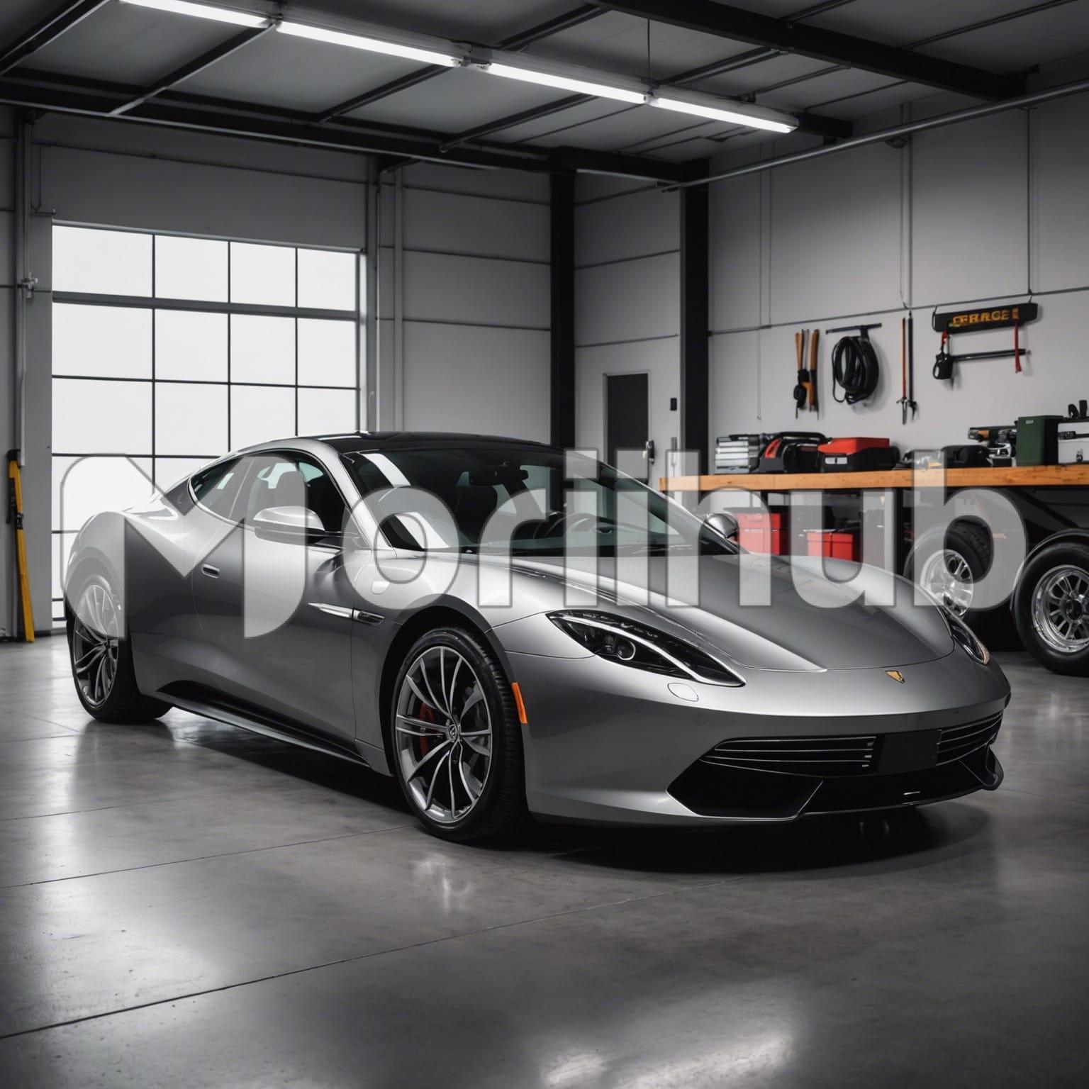In the garage sits a sleek car, its polished exterior gleaming under the soft glow of the lights. The curves of its body exude elegance and power, hinting at the precision engineering beneath the surface. Every line is meticulously crafted, reflecting the epitome of automotive design. Surrounded by the quiet hum of the garage, the car awaits its next adventure, a symbol of sophistication and style in repose.