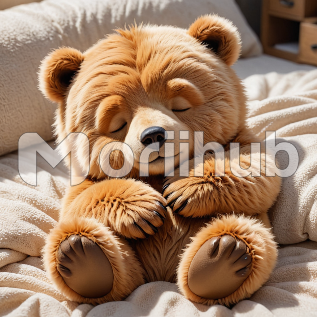 Nestled upon a cozy bed, a plush teddy bear, fashioned in the guise of a slumbering cub, exudes an aura of tranquility. Its velvety fur, a tapestry of warmth and comfort, beckons for gentle caresses. With eyes peacefully shut and paws tenderly folded, it appears lost in dreams of whimsical adventures. Each stitch, a testament to meticulous craftsmanship, imbues the bear with a lifelike charm that invites cuddles and whispers of secrets into its velveteen ears. Amidst the soft embrace of pillows and blankets, the teddy reigns as a guardian of serene dreams.