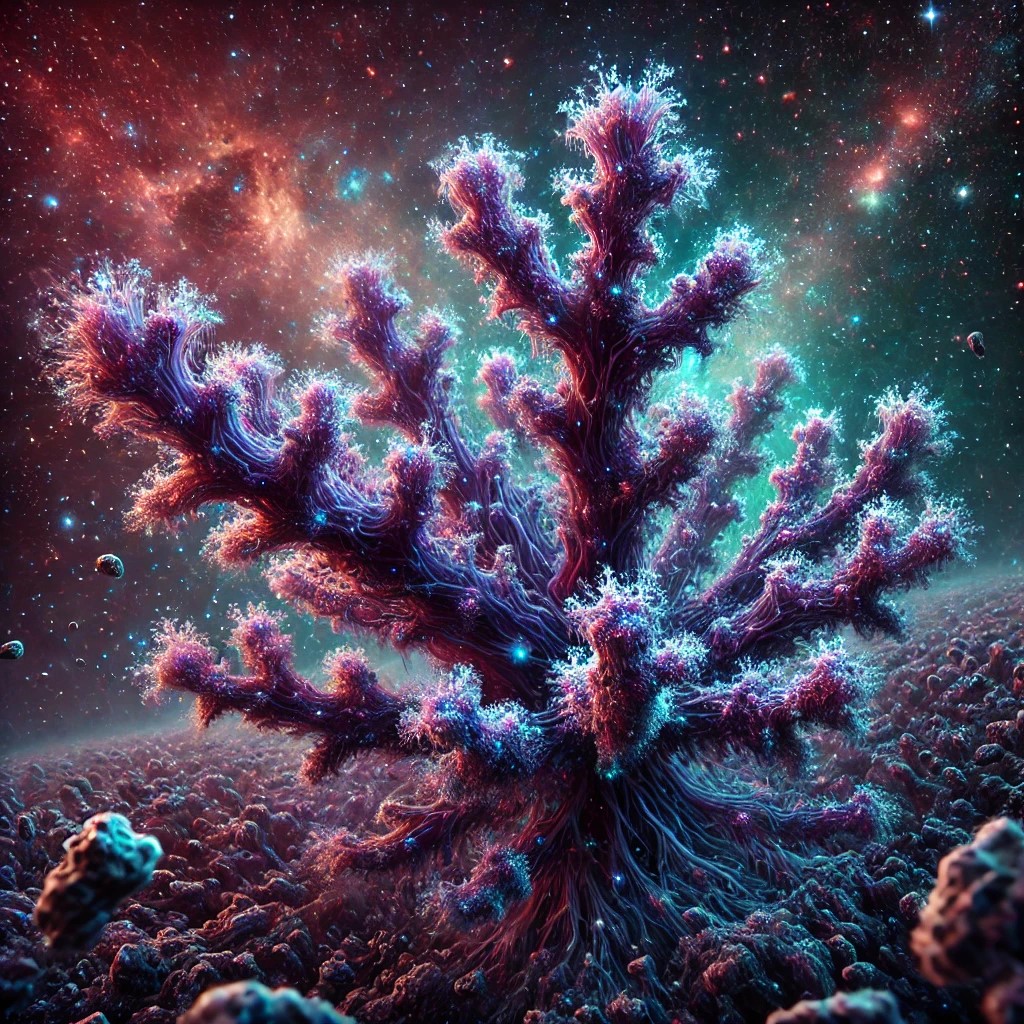 Space coral, glowing with cosmic energy in the vastness of outer space.