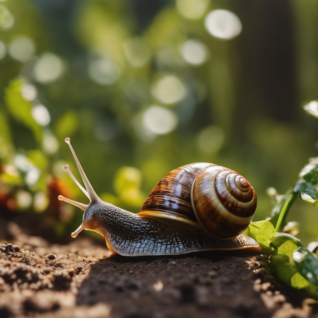 Amidst lush foliage, a snail leisurely glides across the landscape, a tiny voyager in a vibrant world. Its shell, a delicate spiral, harmonizes with the verdant surroundings. In unhurried elegance, the snail’s mucus trail glistens, leaving a shimmering mark on the lush canvas, a poetic testament to nature’s unhurried beauty.
